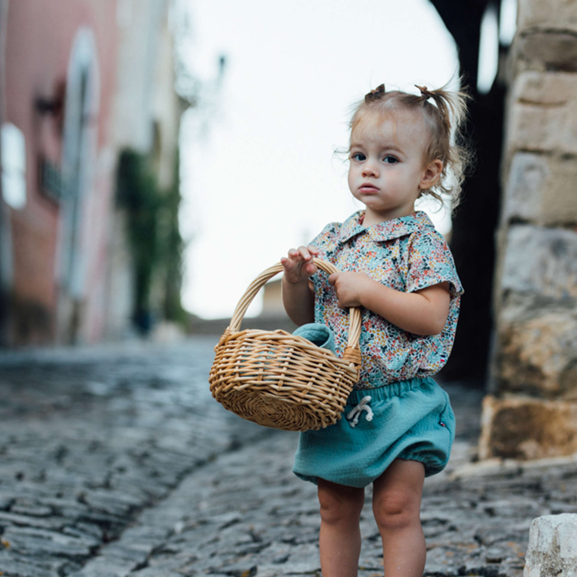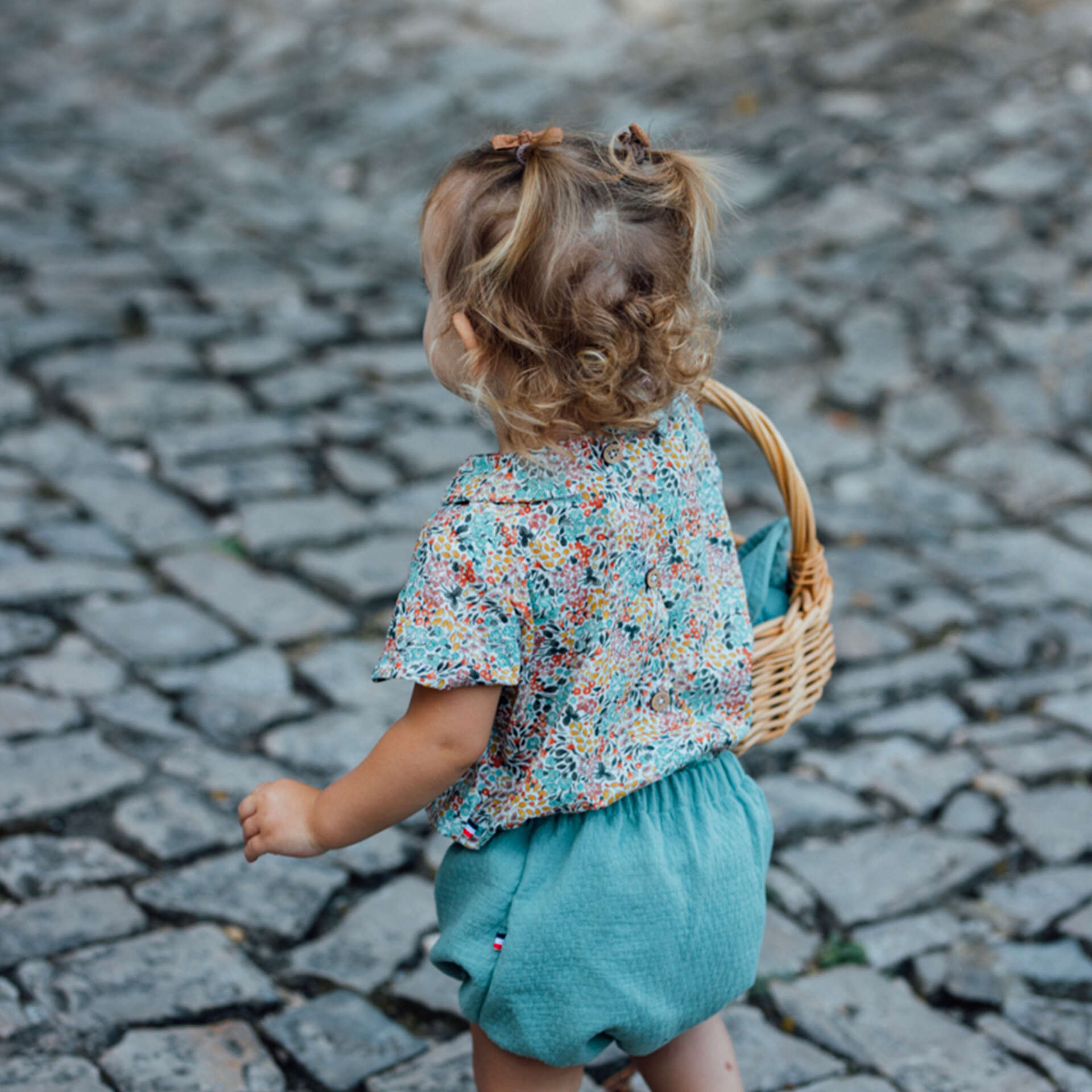 Le top bébé à col claudine Bambou est une pièce délicate qui allie douceur florale et élégance rétro. Fabriqué avec soin dans notre atelier en Provence, en France, ce haut est confectionné à partir de coton bio certifié GOTS, imprimé d’un motif fleuri enchanteur qui évoque la beauté printanière des jardins en fleurs.