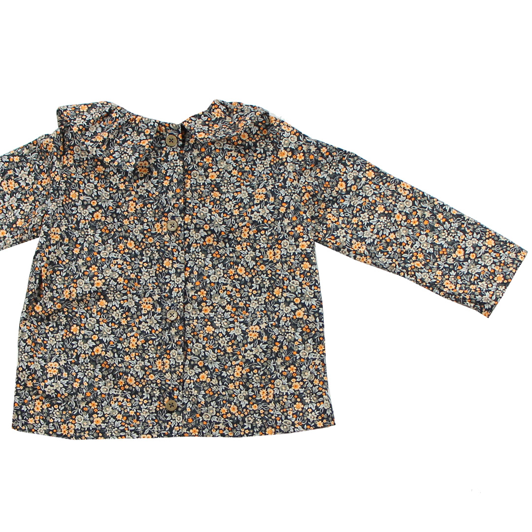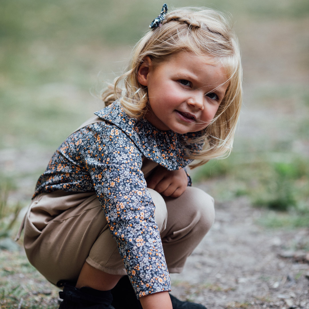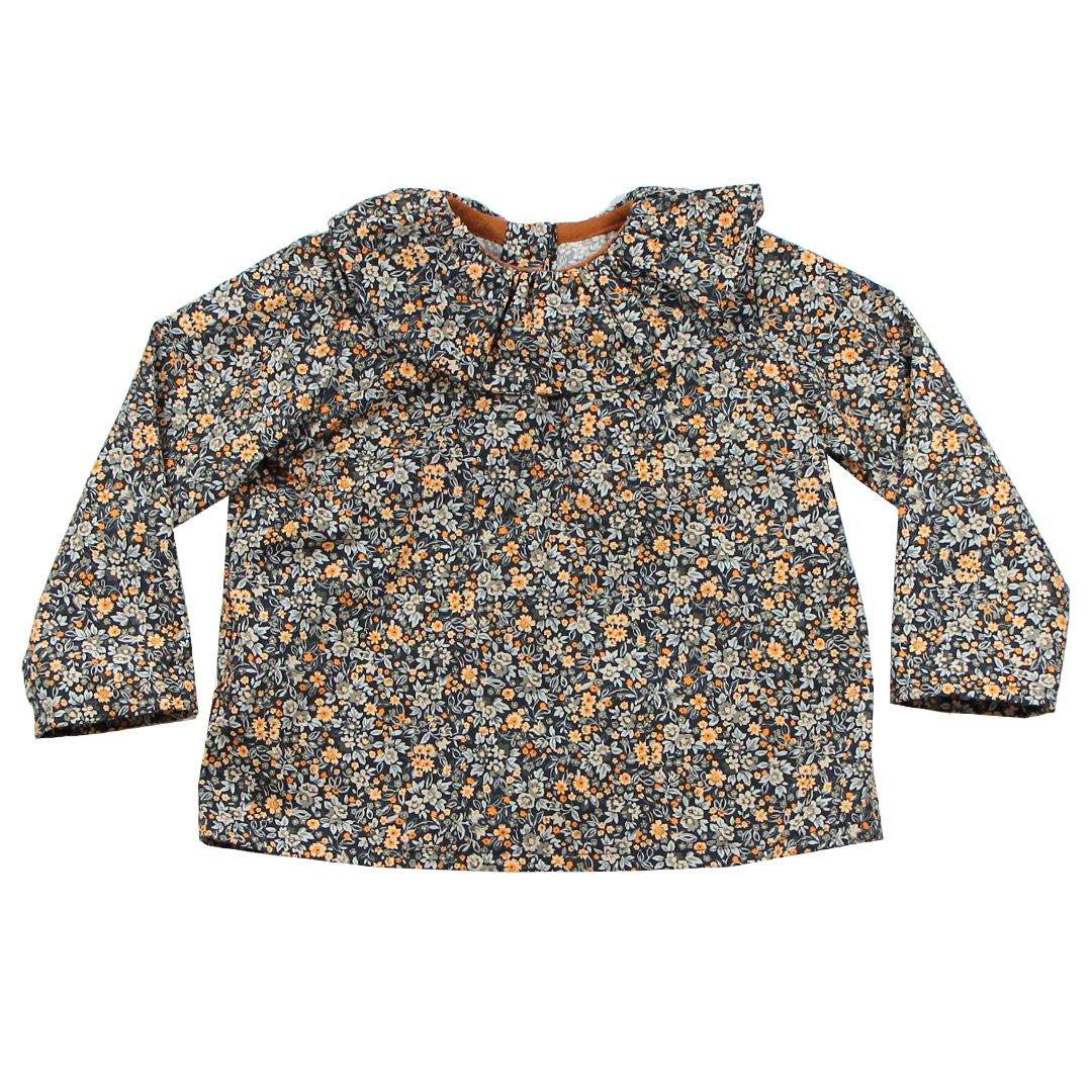 Top manches longues en coton bio imprimé fleuri, avec une jolie collerette.