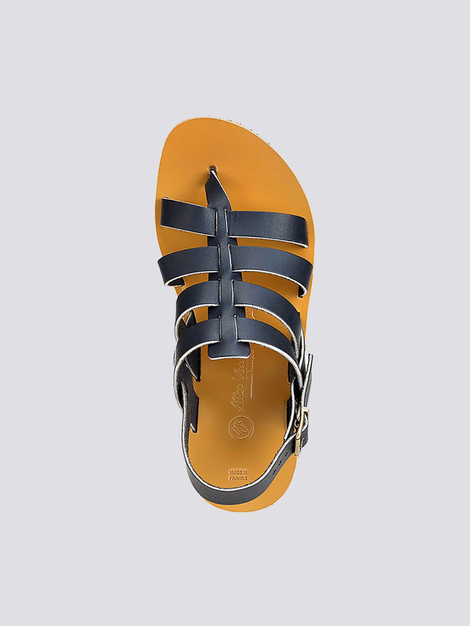 Voici la sandale ROME de type tropézienne à 4 lanières. En cuir Noir, elle est à la fois sérieuse et stylée.